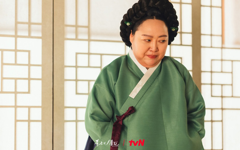 ホンの側室であり、ジェサン大君の腹心。天下絶色の美人で、歌、ダンス、伽耶琴(カヤグム)などを学び、長安の名のある妓女たちから男性の心を盗む技術を学んだ。そして王の側室までのし上がったが、ジェサン大君のために宮内のあらゆる情報を広める役割をしている。